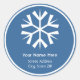 Ein Aufkleber mit einer weißen Schneeflocke über einem blauen Hintergrund. Weiße kreisförmige Gestaltung. Personalisieren Sie mit Ihrem Namen und Ihrer Adresse unter Schneeflocke. Suchen Sie nach passenden Artikeln in Jill's Paperie.