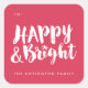 Nutzen Sie diese festlichen Aufkleber als Geschenkmarke in Ihrer Urlaubsumhüllung! Enthält eine "Happy & Bright" Meldung im Pinseltyp auf rotem Hintergrund.