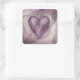 Quadratischer Aufkleber, um unsere Einladung zum "Hervorhebenden Herz" mit einem Bild eines lila Herzens, das zwei weiße Calla-Lilien hinter den Schleiern des Lavendels umfasst, zu ergänzen. Siehe entsprechende Einladung, Umschlag, Gefälligkeitstafel und Etikett. Die gesamte Erleuchtung-Sticker-Auflistung finden Sie in FORDERUNGEN | Aufkleber und Etiketten.