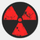 Schwarzer Aufkleber mit verwittertem rotem Strahlungssymbol.