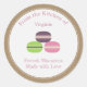 Ein rustikaler Etikettenaufkleber mit brauner Kraftfütterung, eine Illustration von 3 bunten französischen Makaronen in rosa, lila und grünen Farben und anpassbaren Texten. Sie können sie verwenden, wenn Sie Süßigkeiten Leckereien anbieten oder Ihre Backrezepte verkaufen.