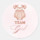 Mit diesem Aufkleber "Team Girl" kannst du deine Unterstützung für den kleinen Fehler zeigen! Das Design ist mit einem süß rosa Aquarell-Stil und einer Baby Outfit-Illustration gestaltet und ist das perfekte Accessoire zum Tragen. Ein spielerischer Weg, Ihrem Geschlecht Spaß und Teamgeist hinzuzufügen, offenbart Party.