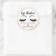 Ein eleganter Aufkleber für Schmink- oder Wimpern-Produkte, mit einer goldenen Rose-Glitzer-Grenze und glitzernden Wimpern mit farbigem Augenschatten.