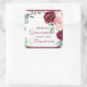 Ein Aufkleber aus Quinceanera mit bordeauxroten, Glitzer- und Blumenmotiven. Dieser Party Aufkleber kann mit Ihren Informationen personalisiert werden.