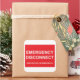 Ein NOTFALLDISCONNECT Aufkleber mit spanischem Untertitel. Desconexión de emergencia.