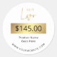 Erstellen Sie mit diesem eleganten Template für das Business-Preis-Label individuelle Preismarken für Ihre Produkte in weiß und gold. Fügen Sie Ihr Logo, den Produktnamen und den Preis hinzu, um für Ihr Unternehmen einen Rundaufkleber zu erstellen. *Gold ist ein in den Kunstwerken simulierter Goldeffekt; es ist keine echte Goldfolie.