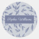 Berufliches Produktetikett rund Aufkleber zur Darstellung Ihrer Marke. Elegantes französisches Blumenmuster in dunkelblau in einem weichen, staubigen Blau. Skripttext für Name oder Brandname.