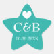 Aqua / Türkis blau und weiß Seesterne monogramm Strand Hochzeit Gefallen Aufkleber. Niedliches Herz mit mit Monogramm Namen Initialen von Braut und Bräutigam plus Heiratsdatum. Personalisiert danke Ihnen Aufkleber oder extravagante Umschlagsiegeler / Siegel. Elegante Stiltypografie für die Initialen von Braut und Bräutigam. Niedliches maritimes Sternendesign. Anpassbare Hintergrundfarbe. Das Symbol der romantischen Liebe. Sternenfisch geprägte Etiketten für Hochzeitsfeiern an der Küste / am Meer / am Ziel.