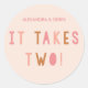 Dieser Aufkleber in den Farbtönen des Joint Effort Couple's Shower Invitation, ist so konzipiert, dass er Platz bietet, um sich mit dem Namen, dem Duschdatum oder dem Text Ihrer Wahl anzupassen. Andere Farben sind verfügbar.