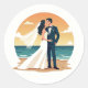 Enthält 20 kleine Aufkleber auf einem Blatt. Eleganter Aufkleber mit einem frisch verheirateten Paar, das bei Sonnenuntergang einen Kuss am Strand mitnimmt, ideal für Hochzeitsfeiern oder Liebe-Dekor.