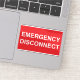 ein NOTFALLDISCONNECT-Aufkleber für Elektriker, das verwendet werden soll, um die Anforderungen von Artikel 230.85 Buchstabe E Nummern 1 und 2 des nationalen Stromkodexes zu erfüllen.