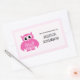 Aufkleber für die Rosa Eule | Schulbedarf für kleine Mädchen. Niedlicher Cartoon Tier Vogel mit personalisierbarem Kindernamen und Text. Kinder gestalten.