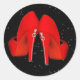 Elegante Rot-High-Heel-Sticker. Diese schönen roten Schuhaufkleber mit hoher Ferse können einfach für Ihre Veranstaltung angepasst werden, indem Sie einfach die Schaltfläche "Anpassen!" auswählen, um Text, Schriftart, Schriftart, Farbe und Wortlaut hinzuzufügen. Bitte beachten Sie: Alle Aufkleber, Karten und Einladungsdesigns, die Sie auf Zazzle finden, sind gedruckte Grafiken ohne wirkliche Juwelen, Bögen, Höhen, Prägen oder Beilagen.