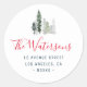Dieser Aufkleber hat eine wunderschöne handgezeichnete Winterwaldgrün und roten Text. Die Textdetails können für Farbe, Schriftart und Platzierung personalisiert sein.