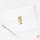 Ein niedliches, gelbes Kätzchen hält blaue Skier und Pfosten auf T - Shirt, T-Shirts, Aufklebern, Tasse und mehr Geschenke für jeden Skifahrer, der Lieben hat, die Pisten zum Vergnügen oder Sport zu schlagen.