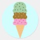 Diese Aufkleber aus Eiscreme sind mit einem dreifachen Skop-Eis-Kegel (Erdbeere, Schokolade-weiße Schokolade-Chip und Minzschokoladenchip) auf einem hellblauen Hintergrund versehen. Klicken Sie auf "Anpassen!", um die Hintergrundfarbe zu ändern, was immer Sie möchten.