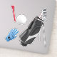 Maßgeschneiderter Vinyl Aufkleber mit einem Bild von einer schwarzen Golftasche, blauem Golfhandschuh, weißem Golfball und rotem Tee. Sehen Sie sich die gesamte Sammlung des Vatertags-Stickers in den INVITES an | Aufkleber und Etiketten.