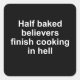 Die halbe gebackene Gläubige beenden das Kochen in der Hölle, sagt dieses lustige Design