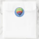 Dieser Heißluftballon heißt Elevation II. Es sind hellgrüne, gelbe, orangefarbene, rote, blaue und lila Farben auf einem himmelblauen Hintergrund auf diesem Aufkleber dargestellt.
