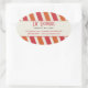 Das ist ein Aufkleber, der nur fröhlich sagt. Dies wäre eine großartige Ergänzung zu einem Identitätssystem für ein auf Kinder ausgerichtetes Unternehmen, das einen Kindersalon, einen Süßwarenladen, einen Eisladen oder einen Spielplatz umfasst. Hellorange und kratzrote diagonale Streifen verleihen ihm ein wenig Lustigkeit mit individuellem Text, der in einer Creme-Leiste stehend ist. Nahe Gunst oder Kunden Einkaufstüten, Verwendung für Werbeaktion oder als Umschlag und Paket-Siegel. Erhältlich in alternativen Farben mit passenden Produkten. com