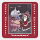 Sticker mit einem lustigen Cartoon über den Weihnachtsmann und Rudolph die Rentiere mit roter Nase. Bild, Hintergrund und Text können angepasst werden. Originelle Kunstwerke von DBcartoons.