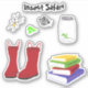 Safari im Hinterhof mit grüner Raupe, gelber und schwarzer Spinne, grüner Grasshopper, schwarz-weißer Schmetterling, Bücher und lustige Rothühner.