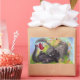 Zwei Katzen spielen inmitten von Kardinälen und Rose. Reproduktion einer Illustration durch einen lebendigen und ausdrucksstarken Künstler, Cheryl Kugler. www.cherylkugler.com