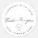 Rundaufkleber mit Herz, der Text "handgefertigt mit Liebe" und Ihr individuelle Name und Website URL oder andere benutzerdefinierte Text auf einem weißen Hintergrund. Das Wort "Danke" ist in einem eleganten Kalligraphieskript-Schriftart geschrieben. Verwendung als Umschlag Aufkleber, Aufkleber für Geschenke und Gefälligkeiten, Produktverpackung usw.