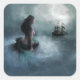 Quadratischer Aufkleber mit einem schönen Bild einer Meerjungfrau mit Blick auf das Meer auf einem Piratenschiff. Künstler unbekannt. Siehe dazu passende Gefälligkeitstüte, Gefälligkeitstafel und Etikett. Sehen Sie sich die gesamte Sammlung der Versandaufkleber in FORDERUNGEN an. | Aufkleber und Etiketten.