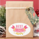 Vintager Aufkleber für Muttertag mit dem Text von "Beste Mama je". Aufkleber für Muttertag im Retro-Stil. Die beste Mama aller Zeiten.