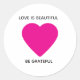 In einer rasanten Welt voller Lärm ruft uns dieser Aufkleber sanft zurück zu dem, was wirklich zählt. "Liebe ist schön" erinnert uns daran, dass Liebe in all ihren Formen der wertvollste Teil des Menschseins ist. Sie findet sich in Beziehungen, Freundlichkeit, Kreativität und sogar in der Selbstversorgung. "Sei dankbar" fördert Achtsamkeit und Präsenz und hilft uns, Freude in den kleinen Dingen zu finden: ein Lächeln, ein Sonnenaufgang, ein freundliches Wort oder ein ruhiger Moment.