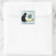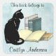 Personalisierter Cat and Books Buchzeichen Sticker vor einem leichten aquamarinen Aquarellhintergrund, mit anpassbarem Text.