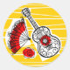 Whimsikisches Design gezeichnet in einem Retro-Stil mit Souvenirs aus einem spanischen Urlaub; eine schmiedeeiserne Gitarre, Lack-Ventilator und rote Rose. Ein individualisierbares Design in Schwarz, Weiß, Rot und Gelb für Sie, um mit Ihrem eigenen Text, Bildern und Ideen zu personalisieren. Ein originales digitales Kunstbild von QuirkyChic.