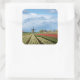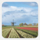 Foto-Aufkleber einer Landschaft mit einer Windmühle und gelbe und rote Tulpen unter einem bewölkten Himmel in der niederländischen Landschaft an einem schönen Frühlingstag in der Bulb Region, Niederlande.