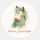 Aufkleber mit einem schönen Weihnachtskelpferd mit Schal. Aufkleber mit Pferd zum Dekorieren von Geschenken oder Verpackungen für Kunden. Illustration ai