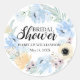 Schöne blaue Blume schaffen einen wunderschönen Blumenkranz. Es gibt auch cremige gelbe Blumen. Brautparty wird in einer Kombination aus moderner Serifen und Schriftzeichen für ein hübsches typografisches Design geschrieben. Der Name und das Datum des Brautparty der künftigen Brauerei sind unten aufgeführt. Perfekt zum Abdichten von Brautduscheinladungen oder Dankeschön-Notizen.