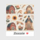 Rustikale Aufkleber mit Scheunen, Blume und Holzelementen.