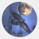 Ein schwarzer Spirit Raven fliegt vor einem riesigen Vollmond. Leistungsstarkes Bild mit einer spirituellen Botschaft.