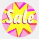 Aufkleber für den Einzelhandel. Farbige, gelbe/rosa/rote, runde Aufkleber mit dem vollständig anpassbaren Text "Verkauf". Diese Aufkleber für den Einzelhandel sind vollständig anpassbar, ändern und ergänzen Ihre Texte & Bilder! Großartige Aufkleber für Ihren Shop oder Garagenverkauf!