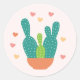Valentinstag Aufkleber mit einem niedlichen Kaktus umgeben von farbenfrohen Herzen. Ideal für die Dekoration von Umschlägen, Leckerei-Taschen und Favoriten.