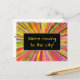 Dieser Spaß und bunten Änderung-vonadresse PostkartenAusrüstungsbeschreibungen die Mitteilung, ", das wir uns verschieben auf die Stadt!" auf der Front und einer kundengerechten Mitteilung auf der Rückseite. Postkarten so konnten benutzt werden, um Freunde und Verwandte zu informieren, dass der Absender ein neues Haus hat.