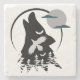Ruf der Wildnis. Eine schwarz-weiße Silhouette eines Wolfs, der auf dem Mond heult. Der Wolfskopf ist rückwärts geneigt, sein Mund ist in einem Howl geöffnet. Der Mond ist ein großer, grauer Kreis mit zwei kleinen, dunklen Wolken darüber. Der Wolf ist umgeben von einem Wald von Bäumen, die auch in schwarz gestreift sind. Das Design des Bildes erzeugt ein Gefühl von Rätsel und Intrige. Das Heulen des Wolfs ist ein uralter Klang, und der Wald ist ein Ort der Dunkelheit und Schatten. Der Mond ist ein Symbol für Hoffnung und Licht. Das Ganze wirkt von Schönheit und Power.