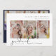 Signature-Skript, 4-Foto-Snapshot, Ankündigung des Abschlusses. Merkmale, 3 vertikale Fotos auf der Vorderseite, Single senkrechte Foto auf der Rückseite, Feiern Party Einladung und massiv marineblau Farbe Unterlage.