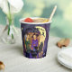 Alle Hexen zu nennen, ist ein wunderschön gefertigtes, skurriles Halloween-Design auf beiden Seiten, eine andere Zusammenstellung von Charakteren mit 3 Hexen, die eine Brühe auf der Vorderseite und der Rückseite hat eine Hexe. Text kann auf beiden Seiten des Papierbechers aktualisiert werden. Schöne, reiche Farben in Orange, Braun und lila mit einem gelben Mond werden Ihre Tischdekoration mit Kürbissen, fliegenden Fledermäusen, einer Eule und einer schwarzen Katze aufheitern.