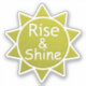 Niedliche Cartoon-Sonne mit der Nachricht: "Rise and Shine". Individuelle Vinyl Aufkleber für Dekoration und Etikettierung. Geschenkidee für Menschen jeden Alters.