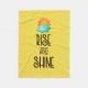Eine Fleecedecke mit niedlichem typografischem Design. Eine flauschige Wolke und eine orange Sonne. Rise und Shine in einem coolen trendigen Schriftart geschrieben.