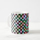 Das Muster ändert allmählich vom perfekten Schwarzweiss-Schachbretauftrag bei einer Seite, zum bunten Chaos an der anderen -- mit allen ZwischenBühnen in-between.