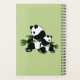 Panda Mama isst Bambus, während das Baby sieht wie Babypanda