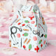 Kreative Krankenschwestern und Krankenschwestern, die mit Pflegeartikeln und Weihnachtscreme und Heiligen versorgt werden.