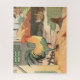 Vollfarbige Abbildung eines Hahns, sitzend auf einem Heuhaufen und behaltend Auge auf die Hühner und Küken im Hof. ✪ Probieren Sie unsere anderen Geschäfte auf Zazzle aus